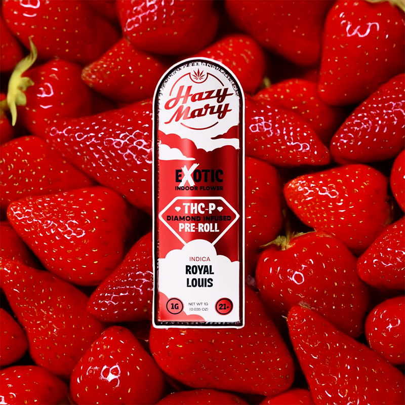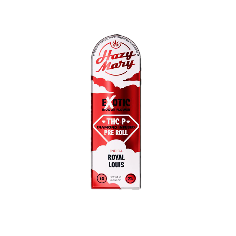Step into royalty with Royal Louis, an indica pre-roll infused with THC-P diamonds and exotic indoor flower. Rich, smooth, and regal, this 1 gram roll invites deep relaxation and evening indulgence.